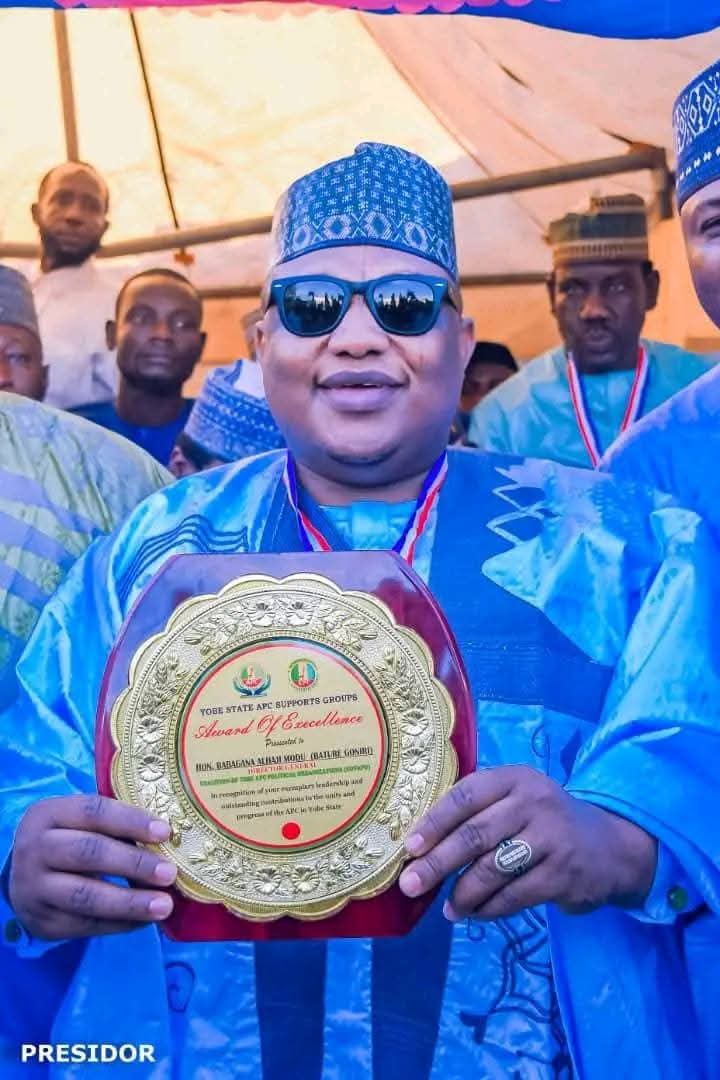 The Senior Special Assistant to the President on Special Needs and Equal Opportunities, Hon. Mohammed Abba Isa, has congratulated the Director-General of the Coalition of Yobe APC Political Organizations (COYAPO), Babagana Alhaji Modu (Bature Goniri), MBA, MInsTA, on his Award of Excellence conferred by the 361 APC Support Groups in Yobe State.